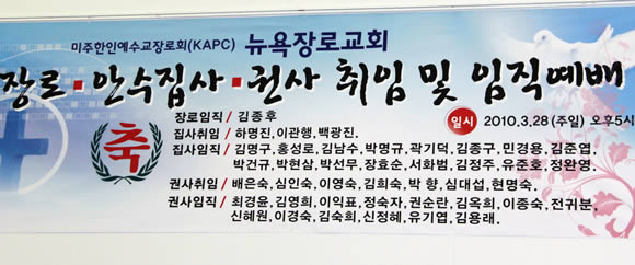 뉴욕장로교회 대형 임직식/선물을 주지도 받지도 않아
