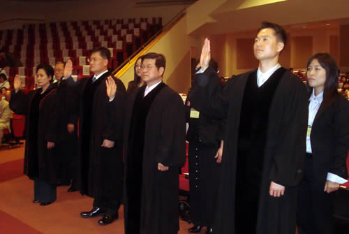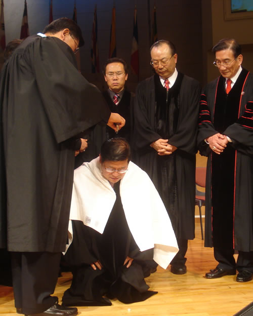 이어진 4명의 안수식에서 김영길 총회장(안수위원장)이 서약을 받았고 안수식에 이어 공포및 증서수여가 있었다.