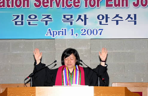 목사안수식은 뉴욕예일장로교회, 퀸즈중앙장로교회, 뉴욕한성교회등 김은주 목사가 사역하거나 했던 교회들의 성도들과 프린스톤신학원 동문과 가족이 참가한 가운데 성황속에 열렸다. 안수는 PCUSA교단으로 부터 받아 이중언어로 진행됐다.