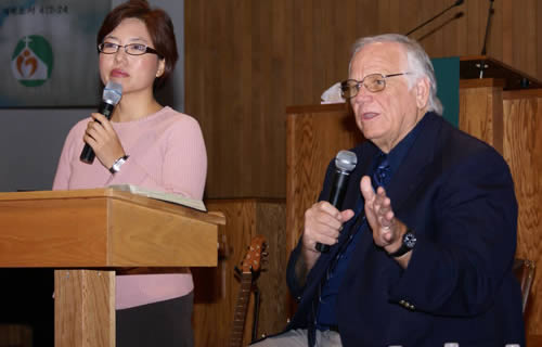 로렌커닝햄 목사는 10주 동안 3개의 국가에서 4번의 무릎수술을 받아 불편한 가운데에서도 앉아서 집회를 인도했다. 통역은 순회집회 매니저인 김영신 자매가 담당했다.