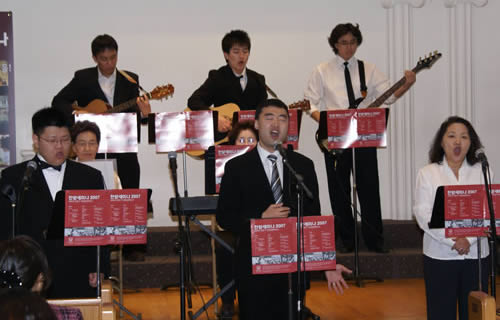 작은 카네기홀 같이 생긴 예배당에서 다음께 부른 찬송은 마치 무대에서 공연을 하듯 웅장하고 아름다웠다.