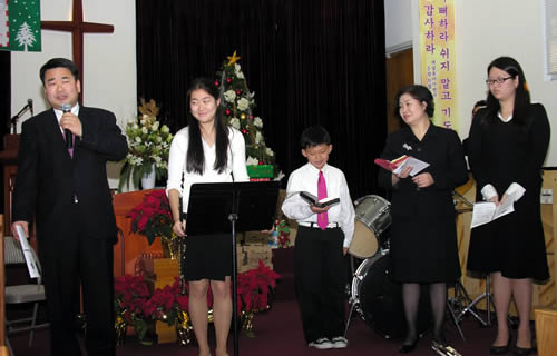 성탄절을 맞아 예수님 오신 날을 찬양하는 가족 찬양 경연대회가 열렸다. 뉴욕늘기쁜교회(김홍석 목사)는 12월 24일(주일) 프래시메도우에 위치한 교회에서 성도들의 가족들이 모여 즐거운 찬양경연대회를 열고 멋진 솜씨를 뽐냈다.
