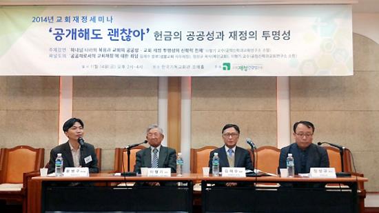교회재정건강성운동은 14일 오후 서울 종로5가 기독교회관에서 ‘공개해도 괜찮아: 헌금의 공공성과 재정의 투명성’이라는 주제로 교회재정 세미나를 개최했다.