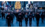 ▲ 화려한 뉴욕의 성탄 장식 아래, 행인들은 무심한 표정으로 스마트폰을 보며 걷고 있다. (AI사진)