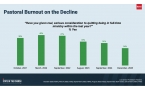 [기사요약] 미국 개신교 목회자의 사임 고려 비율이 2022년 42% 정점을 찍은 후 최근 24%로 감소했다. 바나그룹의 최신 데이터는 팬데믹 당시의 급박한 위기는 넘겼음을 시사한다. 그러나 전문가들은 이를 완전한 회복이 아닌 '안정화' 단계로 분석하며, 여전히 내재된 피로감과 관계적 지원 시스템의 필요성을 강조한다.