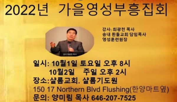 샬롬교회, 가을영성부흥집회-강사 최광천 목사