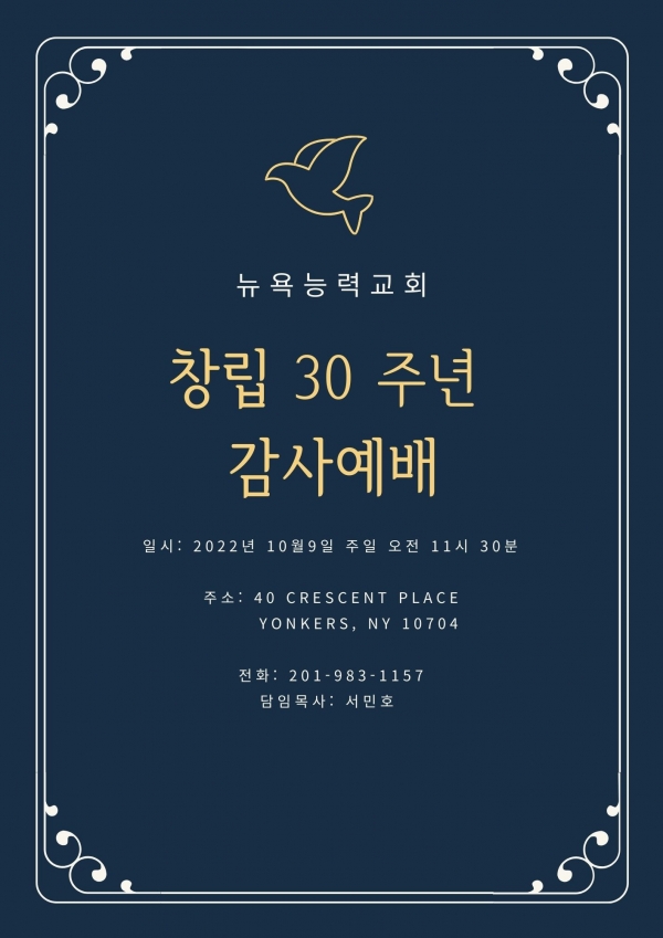뉴욕능력교회 창립 30 주년 감사예배 > 행사 등 여러가지 홍보