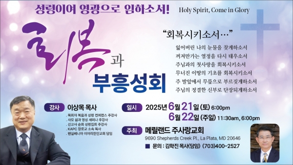 회복부흥성회, (강사 이상목 목사) 메릴렌드주사랑교회에서 > 행사 등 여러가지 홍보