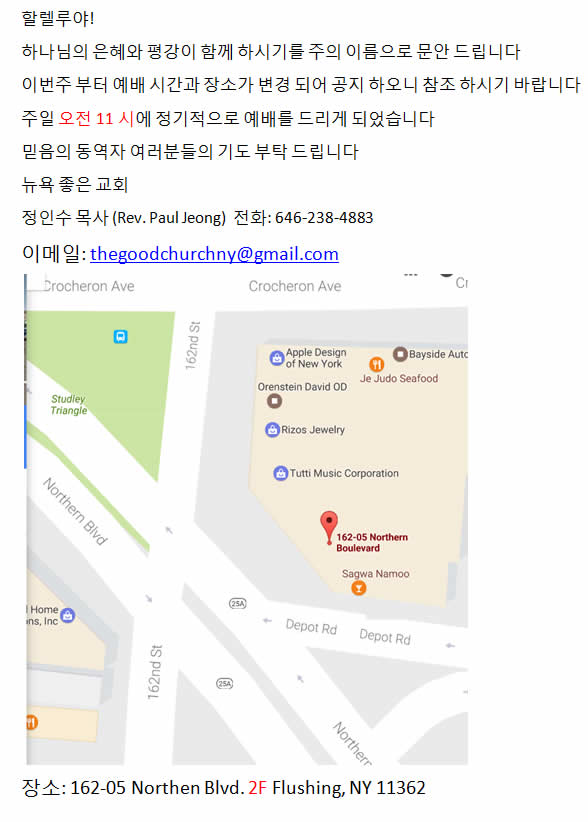 뉴욕좋은교회 예배장소 이전 안내 페이지 정보 뉴욕좋은교회ㆍ2017-01-17 관련링크 본문 뉴욕좋은교회 예배장소 이전 안내 댓글목록 등록된 댓글이 없습니다. 이전글 다음글 수정 삭제 목록