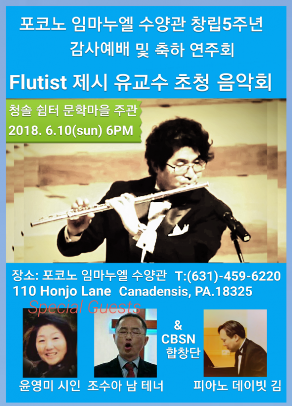 출연: 제시 유교수, 청솔 윤영미시인, 테너 죠수아 남 , 피아노 데이빗 김 & CBSN 방송합창단