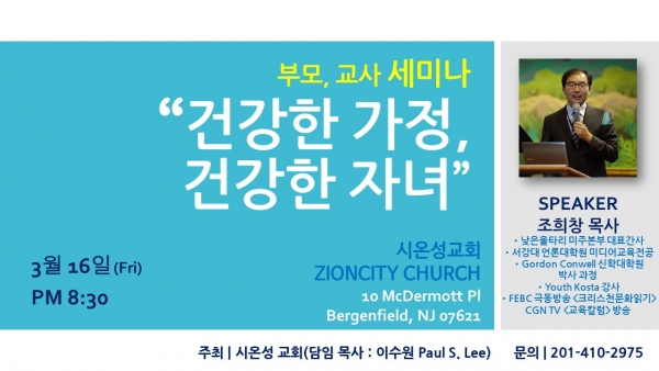 [뉴저지] "건강한 가정,건강한 자녀" 세미나 페이지 정보 낮은울타리USAㆍ2018-03-10 관련링크 이전글 다음글 목록 본문 . 댓글목록 등록된 댓글이 없습니다. 이전글 다음글 목록