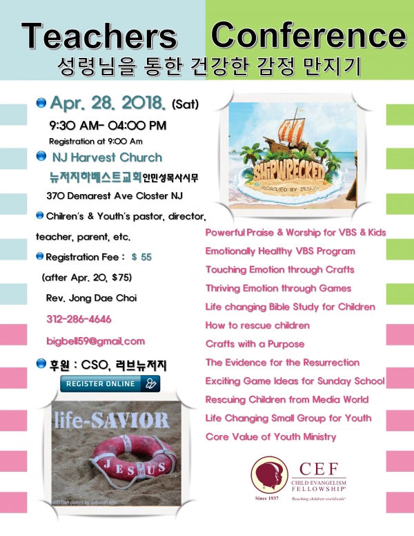 * 등록비: $ 55 (after Apr. 20, $75) 점심 및 교재 제공