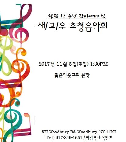 좋은이웃교회 창립12주년 감사예배 및 새교우 초청 음악회