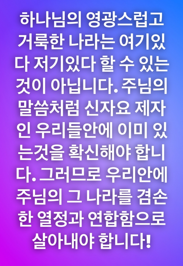 하나님의 나라 확장을 위하여!