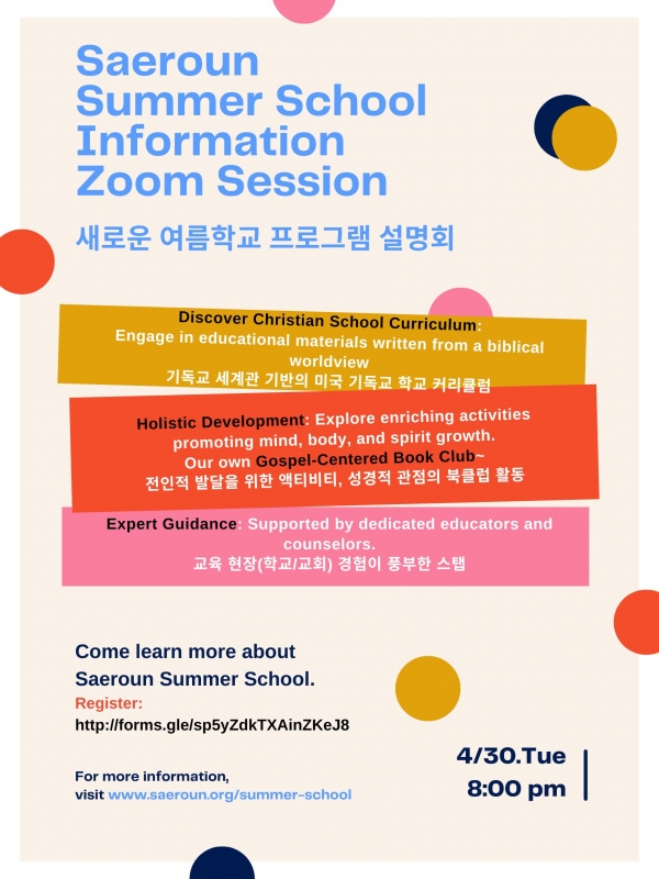 뉴저지 새로운 여름학교(Summer School) | www.saeroun.org/summer-school