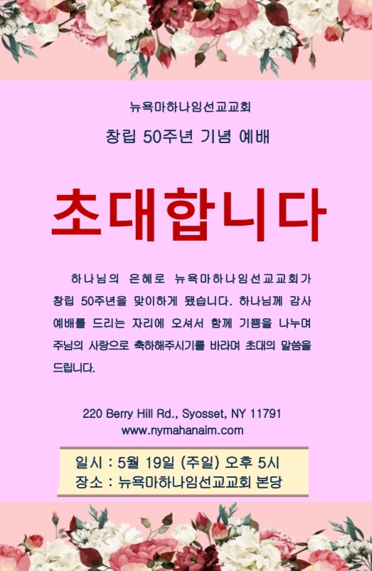 뉴욕마하나임선교교회 창립50주년 기념예배