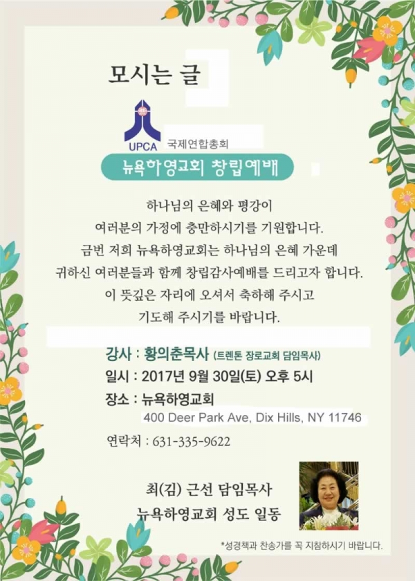 뉴욕하영교회 창립예배 > 행사 등 여러가지 홍보