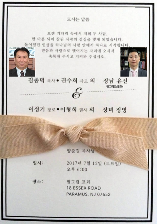 김종덕 목사 아들 김유진 목사 결혼식 > 행사 등 여러가지 홍보