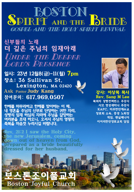 보스톤 성령과 신부 컨퍼런스, 강사: 이상목목사 > 행사 등 여러가지 홍보