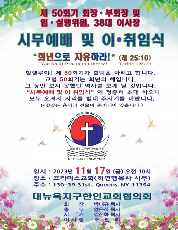 뉴욕교협 제50회기 회장, 부회장 및 임실행위원, 38대 이사장 시무예배 및 이,취임식