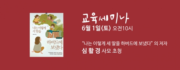많이 오셔서 자녀교육에 대한 좋은 영감을 얻는 좋은 시간이 되기를 바랍니다.