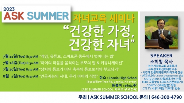 뉴저지장로교회 ASK SCHOOL에서 건강한 가정, 건강한 자녀를 세워가는 <ASK SUMMER 자녀교육세미나>를 엽니다.