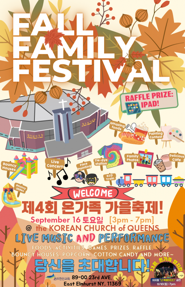 일시 및 장소: 9/16(토) 3-7pm, 퀸즈한인교회