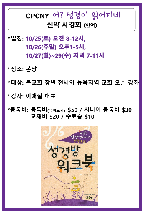 CPCNY 어?성경이 읽어지네! 신약 사경회
