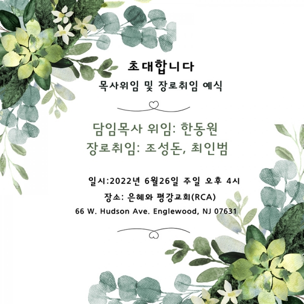은혜와 평강교회 한동원 목사 위임 및 장로취임식