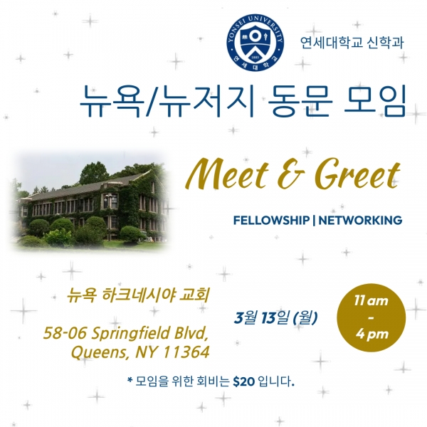 뉴욕과 뉴저지 동문 모임이 3월 13일(월)