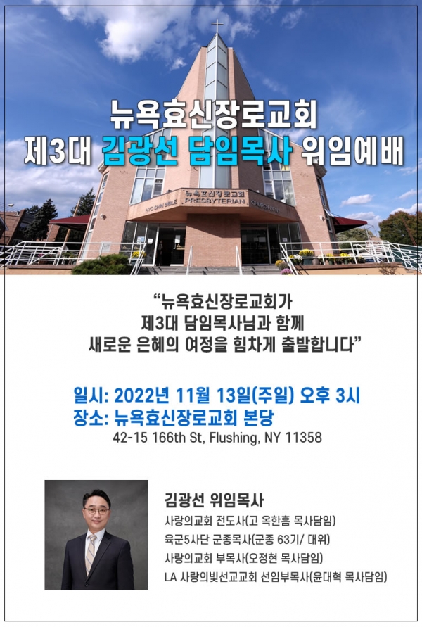 뉴욕효신장로교회 제3대 김광선 담임목사 위임예배