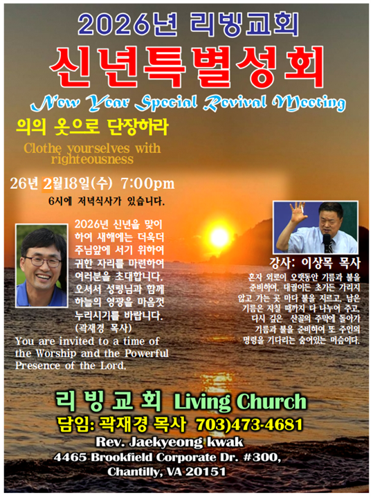 의의 겉옷 세미나, 2026년 신년특별성회 New Year Special Revival Meeting
