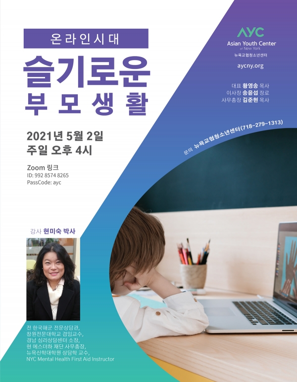 꼭 참석하셔서 이 시대의 자녀교육과 활발한 소통을 이루기 위해 꼭 필요한 정보를 얻으시길 바랍니다. 세미나 참가 신청과 문의는 뉴욕교협청소년센터(718-279-1313)로 연락하시면 상세히 안내해 드리겠습니다. 감사합니다.