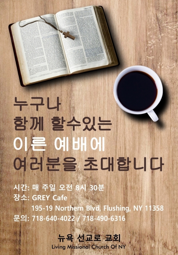 이른 예배 장소: Grey Café(195-19 Northern BLVD Queens, NY 11358)