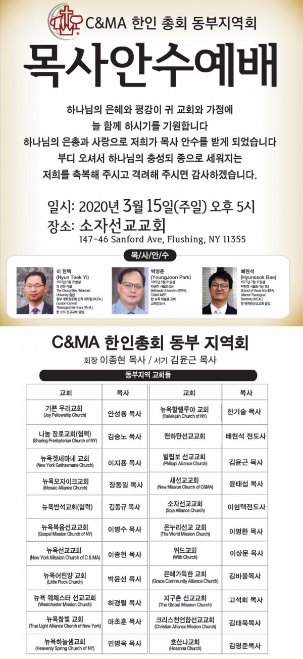 C&MA 한인총회 동부지역회 목사안수예배