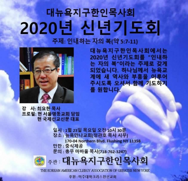 뉴욕목사회 2020 신년기도회 페이지 정보 뉴욕목사회ㆍ2020-01-20 관련링크 이전글 다음글 목록 본문 뉴욕목사회 2020 신년기도회 댓글목록 등록된 댓글이 없습니다. 이전글 다음글 목록