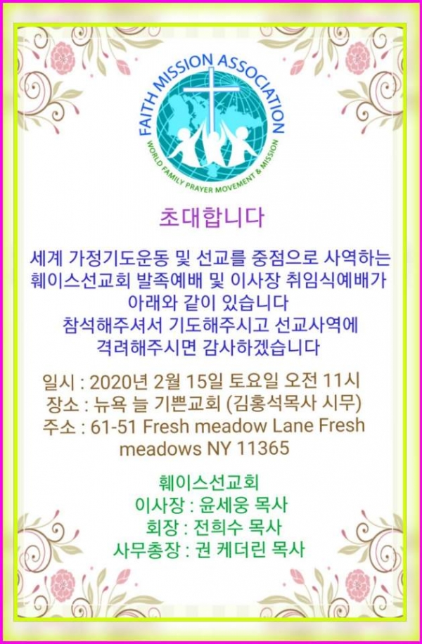 스팸으로 인해 홍보 게시판은 회원등록후 관리자가 권한을 올려야 글쓰기가 가능합니다. 게시판에 독자가 올리시는 행사는 아멘넷 취재에 우선적으로 고려됩니다. 게시판 사용이 불편하시면 이메일(usaamen@gmail.com)과 카톡(아이디 usaamen)으로 텍스트 내용을 보내주셔도 됩니다. 상업적인 글은 허용하지 않습니다.