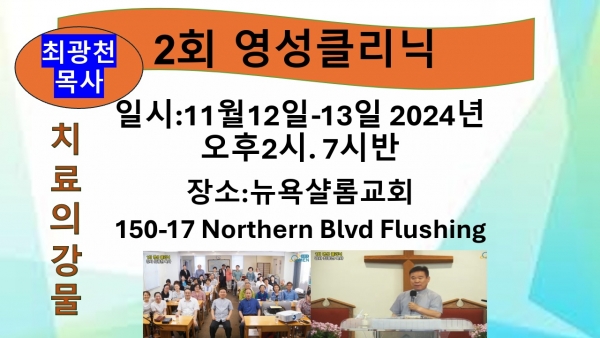 뉴욕샬롬교회 2회 영성클리닉 / 강사 최광천 목사