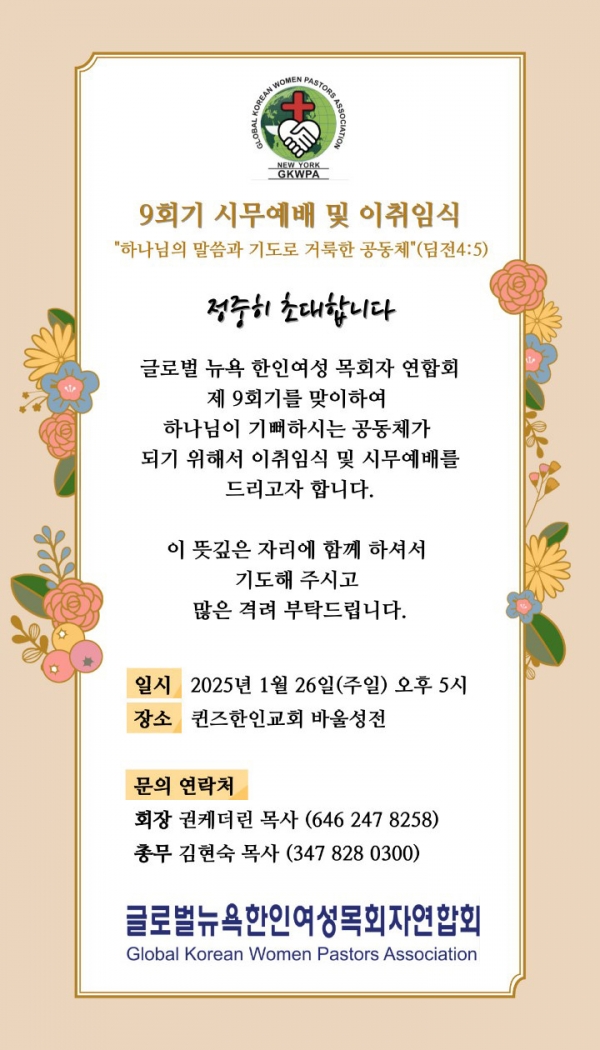 글로벌뉴욕여성목 9회기 시무예배 및 이취임식