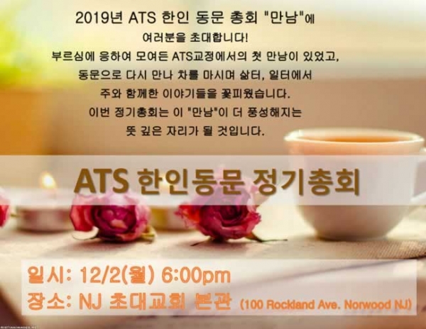 2019 ATS 한인동문회 정기총회의 자리를 "만남"이라는 주제로 마련하고