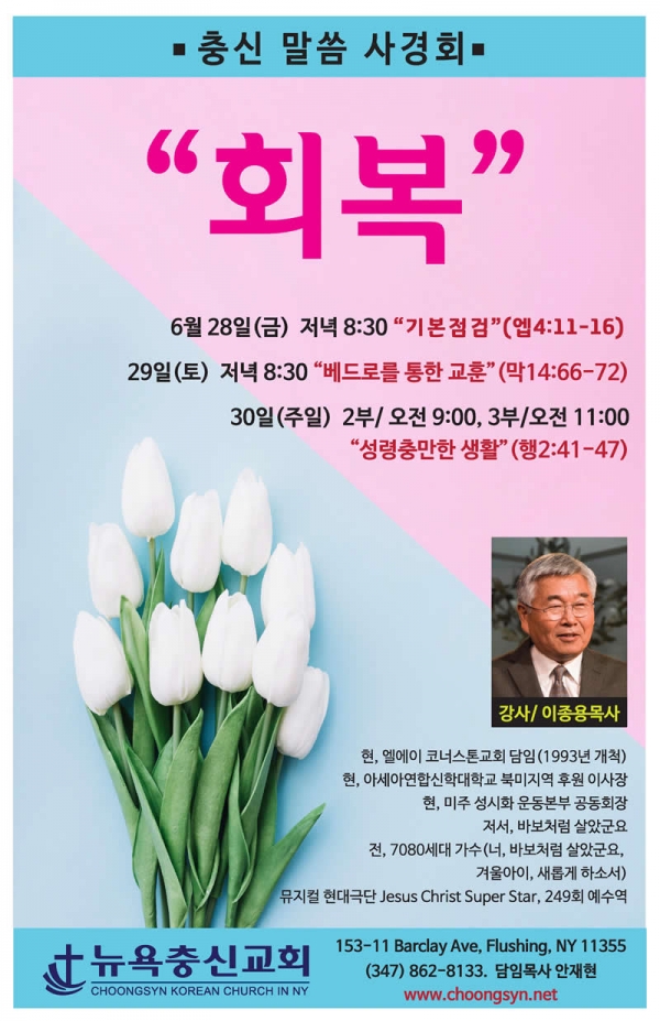 뉴욕충신교회 말씀사경회 / 강사 이종용 목사