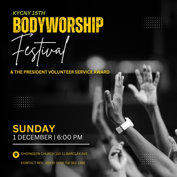 뉴욕한인청소년센터는 초대교회 선진들 믿음의 한자락을 붙잡고 후세들에게 신앙유산이 될 2024 Body Worship Festival을 개최합니다.