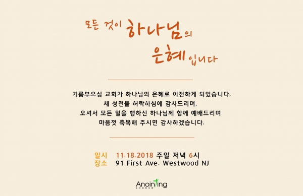 새 성전 입당 감사예배를 드리게 되었습니다.