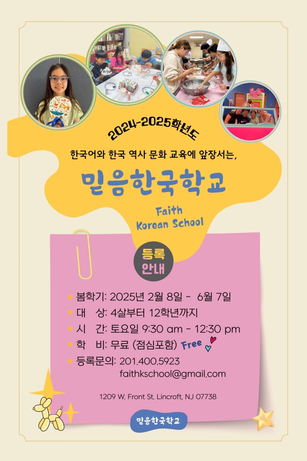 뉴저지 중부 Lincroft에 위치한 믿음한국학교에서 봄학기 학생을 모집합니다.