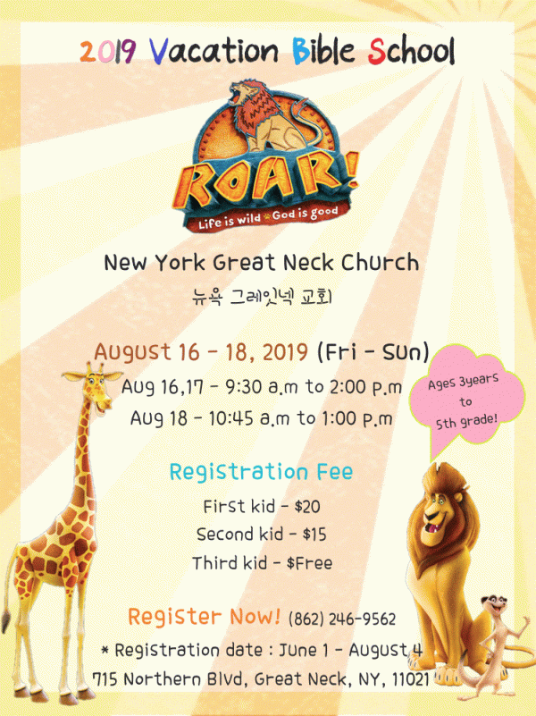 뉴욕, 그레잇넥에 위치한 그레잇넥 교회 VBS가 8월 16-18일에 열립니다! ^^