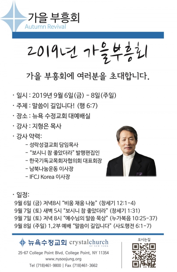 뉴욕수정교회 가을부흥회 / 강사 지형은 목사