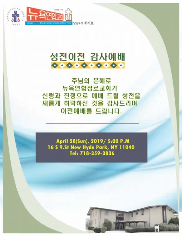 뉴욕연합교회 이전 감사예배 페이지 정보 뉴욕연합교회ㆍ2019-03-14 관련링크 이전글 다음글 목록 본문 뉴욕연합교회 이전 감사예배 댓글목록 등록된 댓글이 없습니다. 이전글 다음글 목록