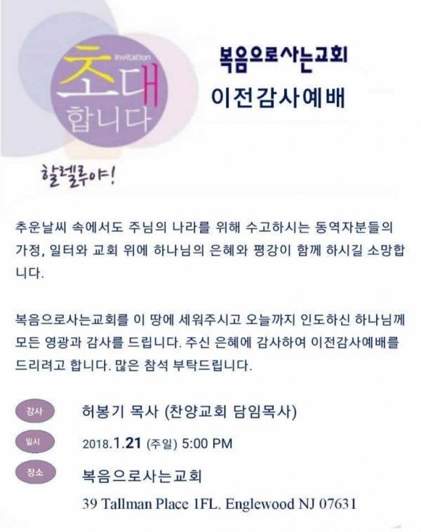 복음으로사는교회 이전 감사예배 > 행사 등 여러가지 홍보
