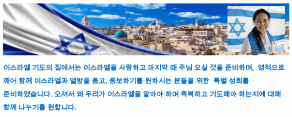 이스라엘에 대해 알기 원하고 함께 중보하기를 원하시는 분들 누구나 환영함!!