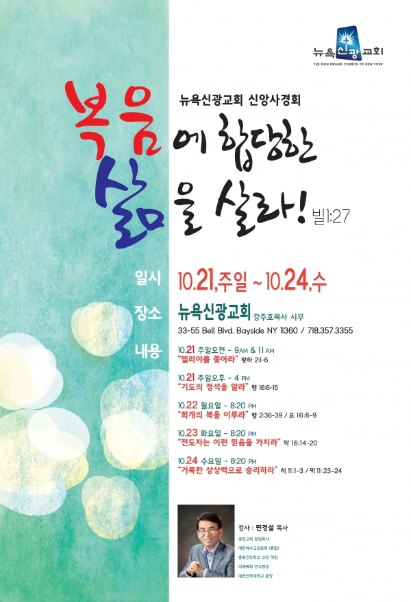 뉴욕신광교회에서 신앙사경회를 개최합니다.